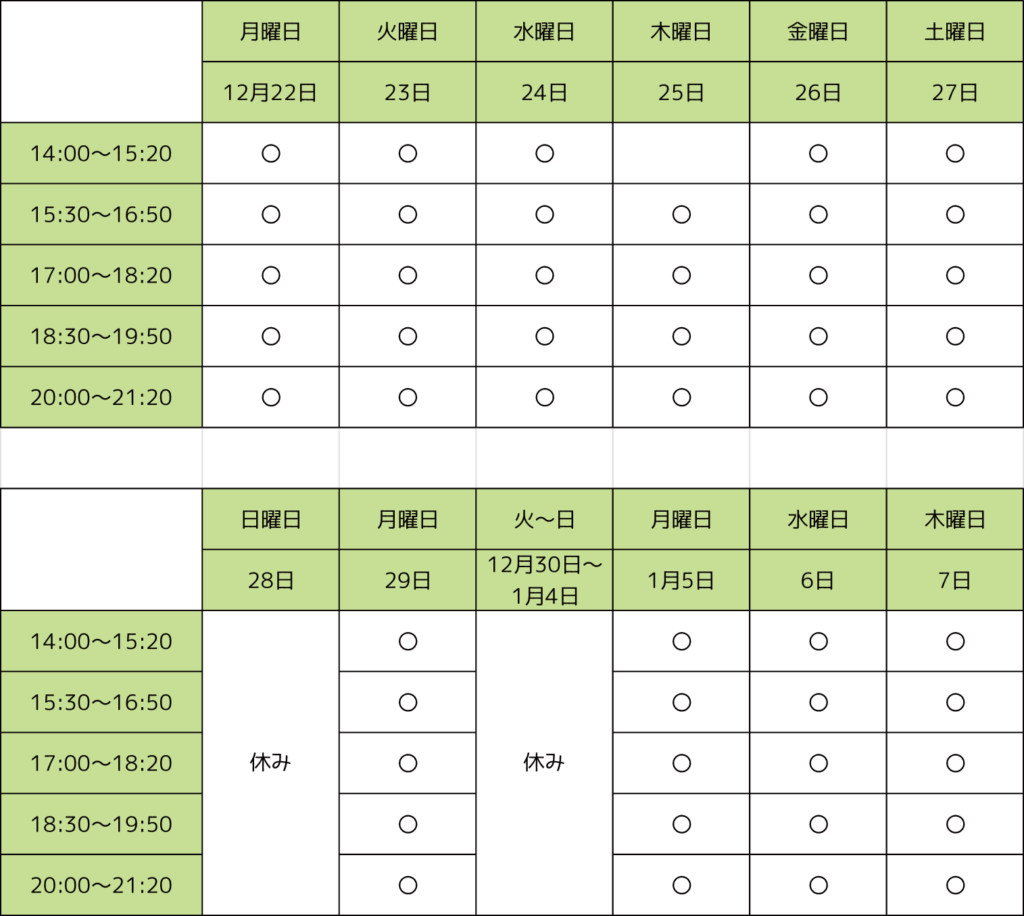 2025年~2026年冬期講習のスケジュール